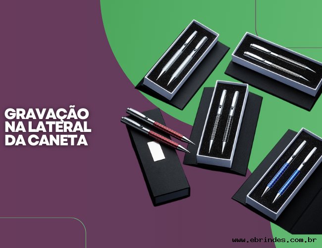 Conjunto composto por caneta e lapiseira metálicas, prateadas com detalhes coloridos e quadriculados. Ambos possuem clip em metal e acionamento por giro, proporcionando praticidade e estilo. O kit acompanha estojo em papelão com placa de metal, interior revestido em espuma para maior proteção.